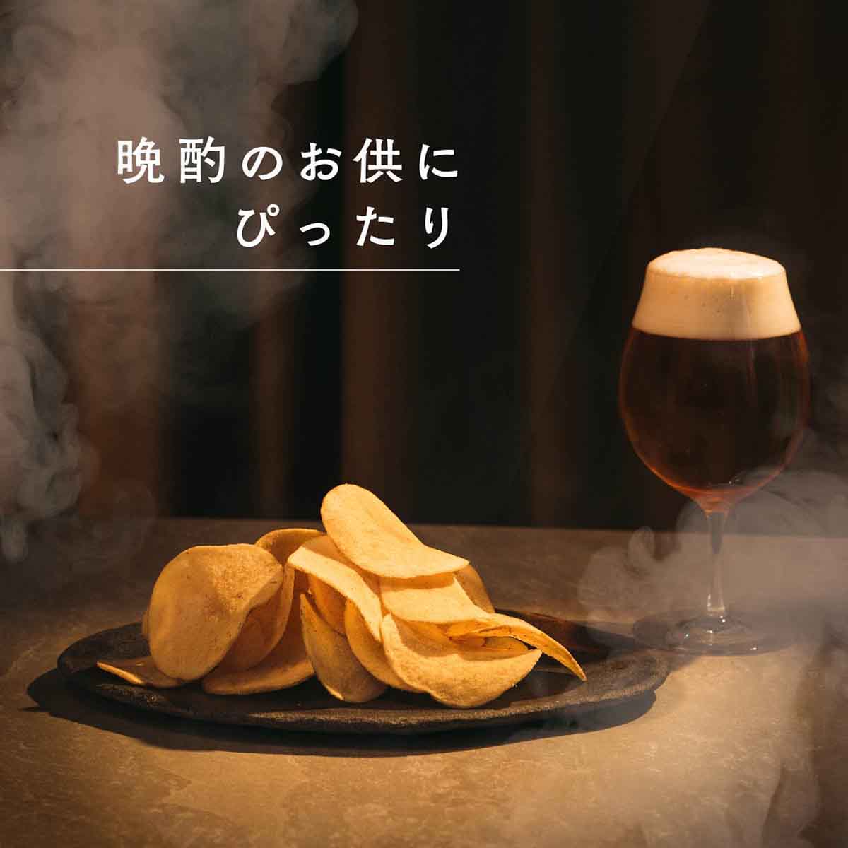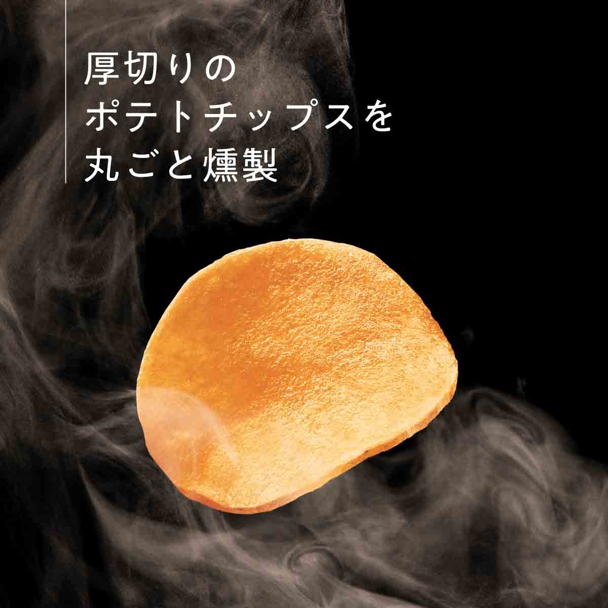 素材にこだわった国産じゃがいもの厚切りチップスを贅沢に丸ごと燻製。