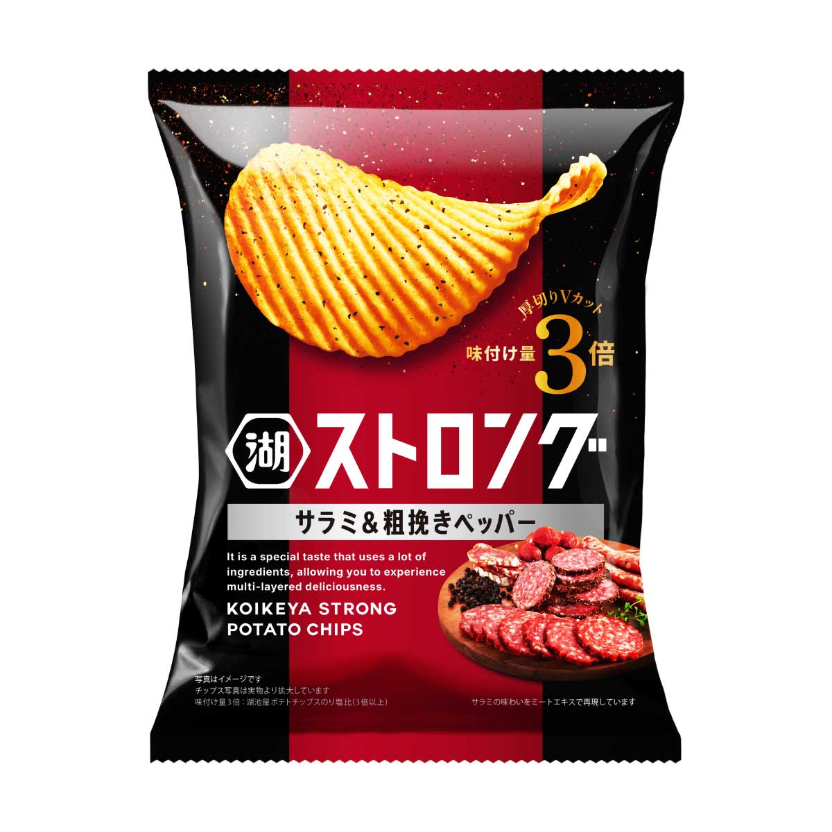 瞬間的に伝わる圧倒的な濃さと旨さ、ザクザクとした厚切りギザギザカットのポテトチップスが特徴です。