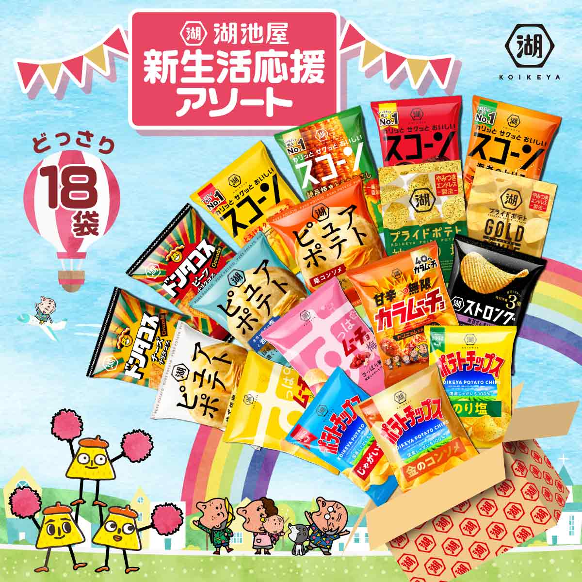湖池屋のポテトチップスやスナックをたっぷり詰め込んだ、当店オリジナルのアソートをご用意しました。