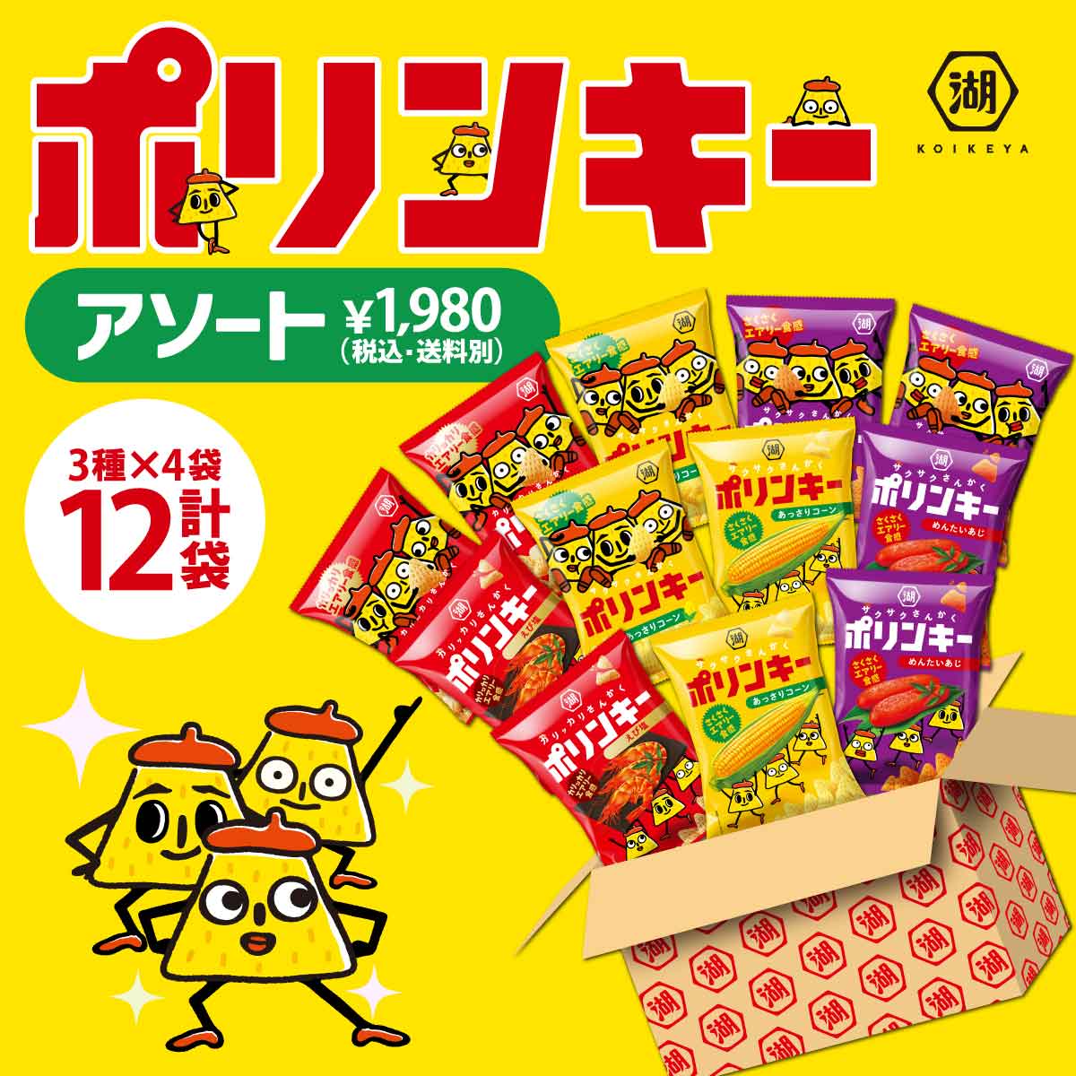 湖池屋のポテトチップスやスナックをたっぷり詰め込んだ、当店オリジナルのアソートをご用意しました。