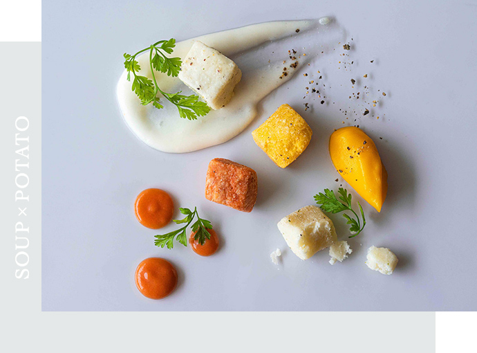 素材の味をいかして作った、クリーミーなじゃがいものスープ。トリュフの風味をきかせ、贅沢に仕上げました。