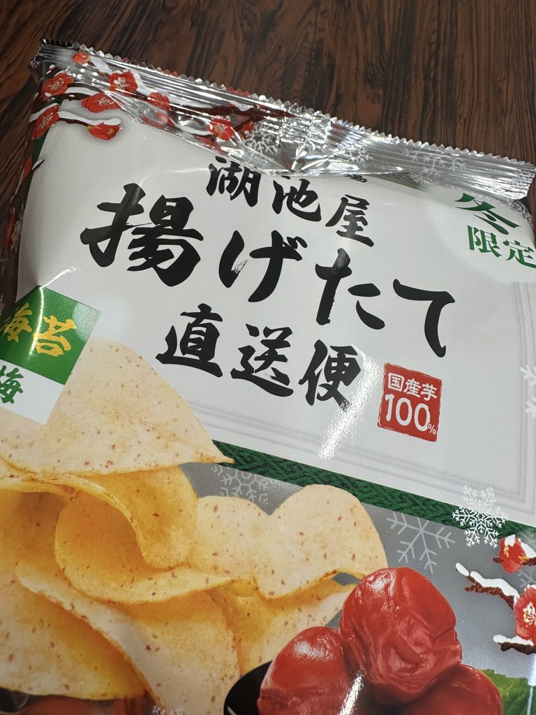 湖池屋さんなので、絶対に美味しい!と思い購入させて頂きました。その通りでした!梅を味わった後、海苔をまぶして味わいました。兎に角「美味しい、美味しい」娘も「期間限定でなくずっと販売してほしい!」と言ってました。あっという間に無くなり次は別の商品を注文させて頂きました。美味しくて止まらない湖池屋さんのポテトチップス!これからも食べ続けます。この商品「冬の揚げたて直送便、だし香る梅」に出会えて良かったです。丁寧な対応ありがとうございました。