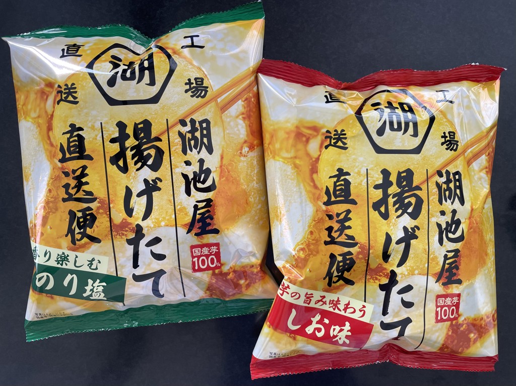工場でしか味わえない揚げたての美味しさをお届けしたい。そんな想いから誕生した「湖池屋揚げたて直送便」。「芋の旨み味わう しお味」と「香り楽しむ のり塩」が楽しめる、お得な味くらべセット。