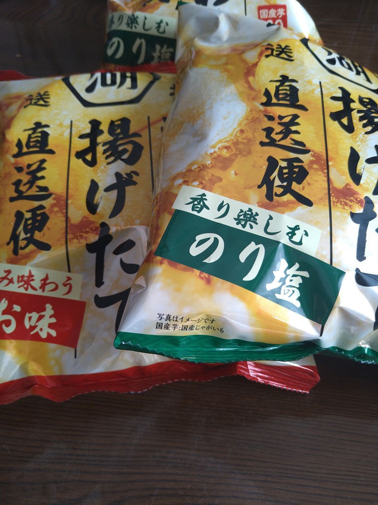 揚げたて直送便のパッケージに惹かれて購入しました。 食べ始めると止まらなくなる美味しさです。じゃが芋の甘味と青のりの風味と塩味のバランスが丁度よい。しお味も安心の美味しさです。