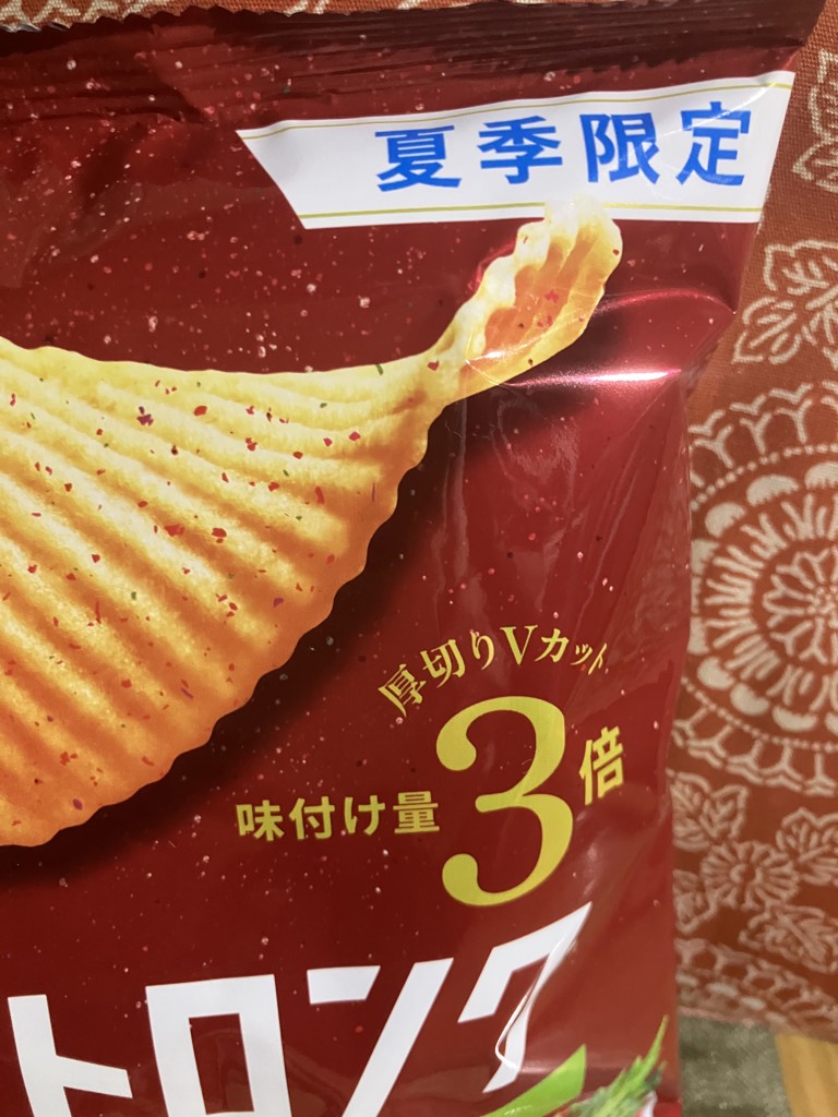 ぎゅっと濃い梅!塩気も酸味もかなりな味付けのポテトチップで、はい…この味には、はまりましたわ‼︎ 【夏季限定】とは、残念…