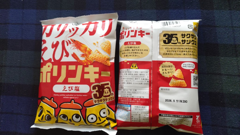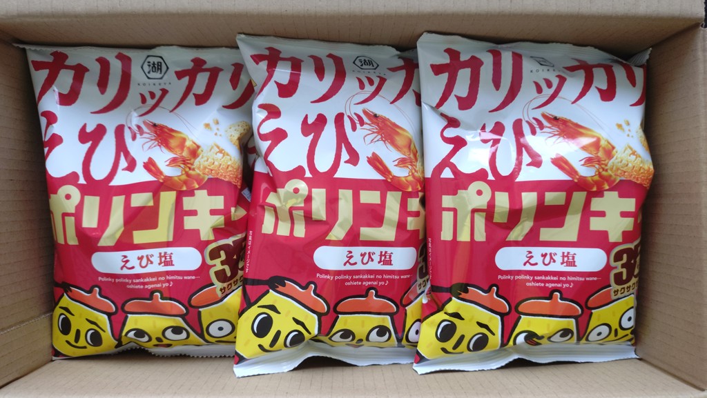 夏のお楽しみパックに入っていたポリンキー 昔は苦手だったが、おいしさ新発見。 カリッカリの白エビ風味のポリンキー軽い食感 カリッカリの秘密は・・。教えてくれないそうです。