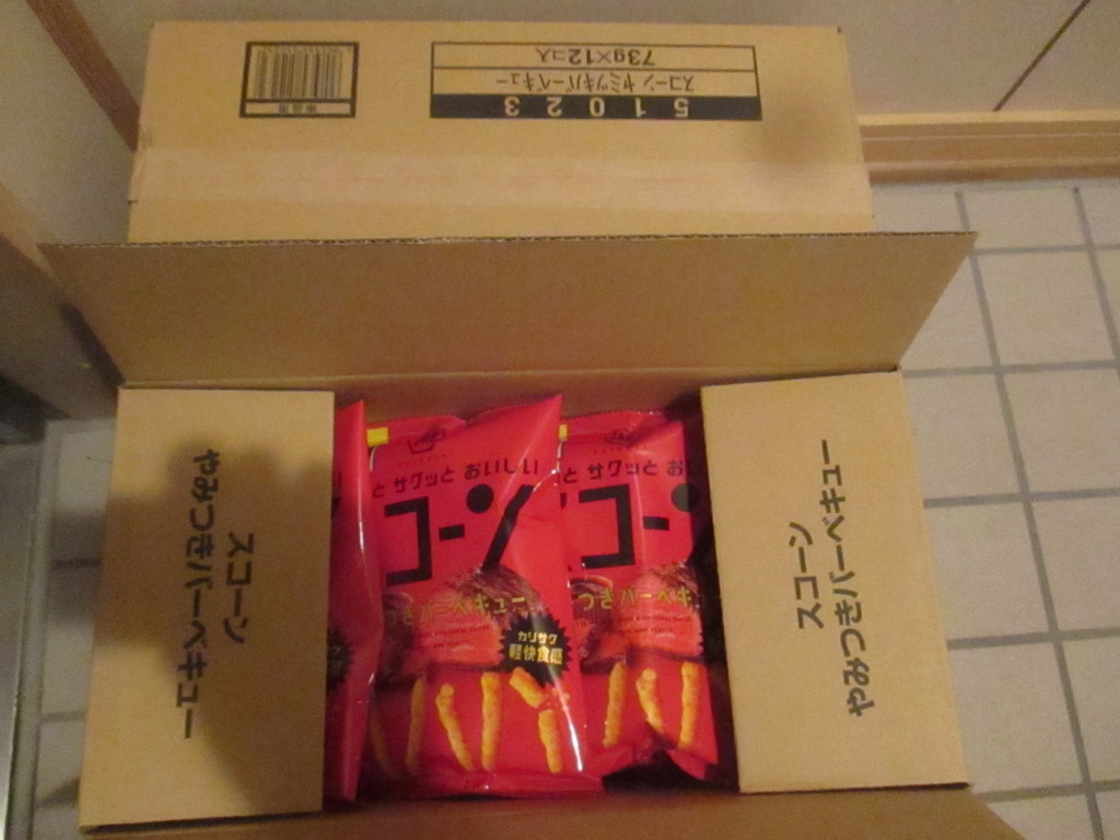 当方初めてオンラインショップで購入致しましたがお店で購入もしてきたのですが5袋くらいでも買物袋のスペースを取りますので、あまり多くまとめ買いすると帰りが大変になるので今回思い切って12袋×4個=48袋購入致しました。ダンボール4つをまとめて届きましたのでしばらく買いに行かなくて良かったです。味は最近さらに美味しくなったせいか、ついつい食べ過ぎてしまいます。主に映画を観ながら食べています。