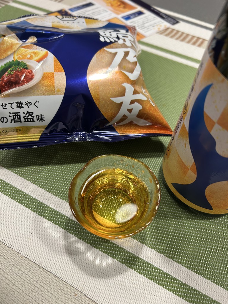 昨年からのリピート。 吟醸酒ですけど今風な香りきつめなことはなく、適度に抑えてる感じはします。 かといって濃い酒盗味のポテチに負けない深みがあると思えます。 なんだかんだ言ってもポテチも酒🍶も進みますw