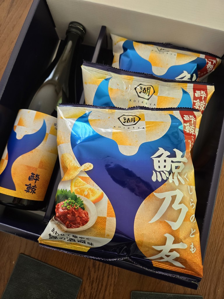 もともと日本酒は好きだったのですが、ポテチと一緒に食べる機会はほとんどありませんでした。 ポテチといえばゴクゴク飲めるビールやチューハイの方が良いかなって思い込んでいたので。 ですが、日本酒に合うポテチを開発している様子をテレビで拝見して、気になっていました。 酔鯨はまずは軽く冷やして飲んでみました。 ふんわりとした甘さとわずかな酸味を感じる飲みやすいお酒。 そして鯨乃友を一口。 食べごたえのある厚めのポテチで、鰹酒盗の旨味を感じます。 ノーマルなポテチなら勢いで食べてしまうのですが、こちらはじっくりと良く噛んで味わう、満足度の高いポテチですね。 ゆっくりと飲む日本酒のスピードと良く合うと思います。 後日、今度はキンキンに冷やした酔鯨と共に鯨乃友を頂きました。 きりりと辛口になって、これもまたポテチの旨味が引き立って美味しかったです! 日本酒とポテチの組み合わせ、これからも探求していきたいと思います。 素敵なコラボをありがとうございました!